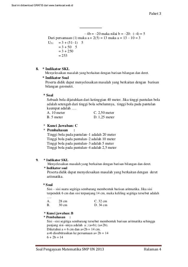 Contoh Soal Deret Aritmatika Beserta Jawabannya Untuk Smp