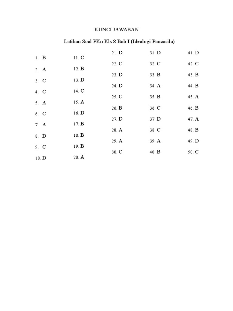 Kunci Jawaban Latihan Soal Pkn Kls 8 Bab I Ideologi Pancasila