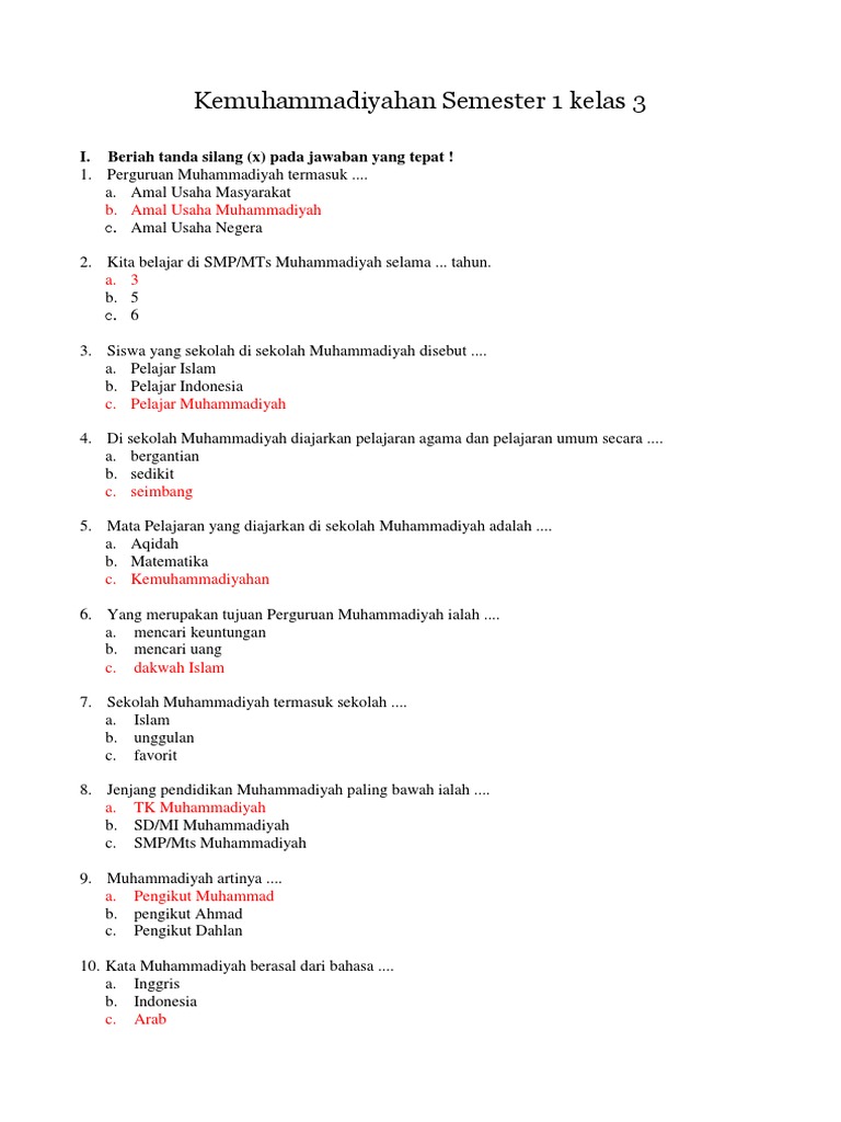 Kemuhammadiyahan Semester 1 Kelas 3