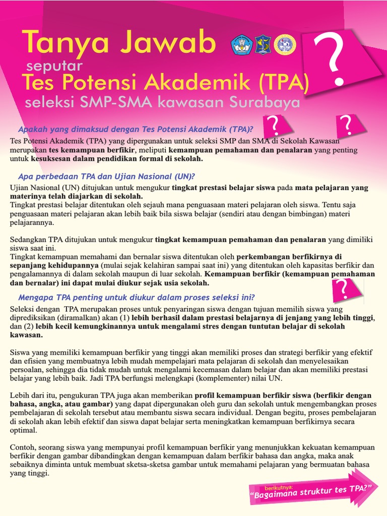 Tanya Jawab Tes Potensi Akademik Tpa Yang Dipergunakan Untuk
