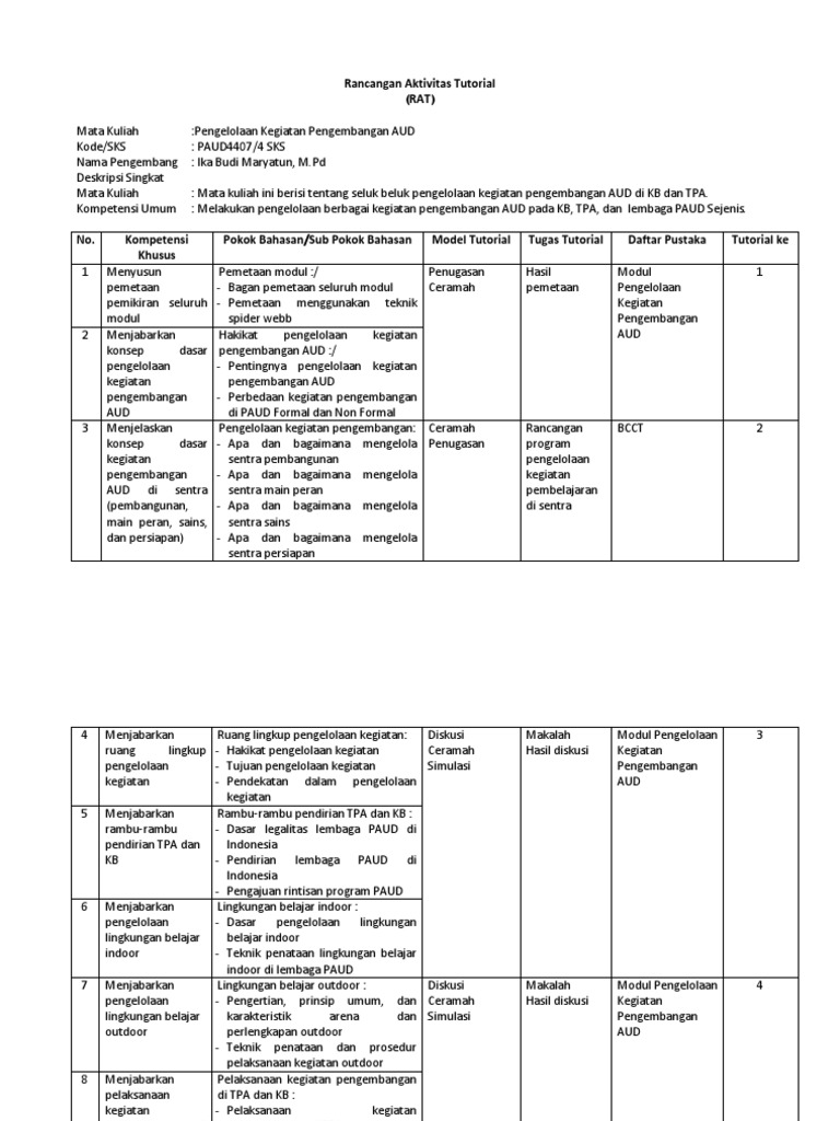 Daftar Pelajaran Kelas Paud Tk Tpa Sps Adalah Suatu Rancangan Yang