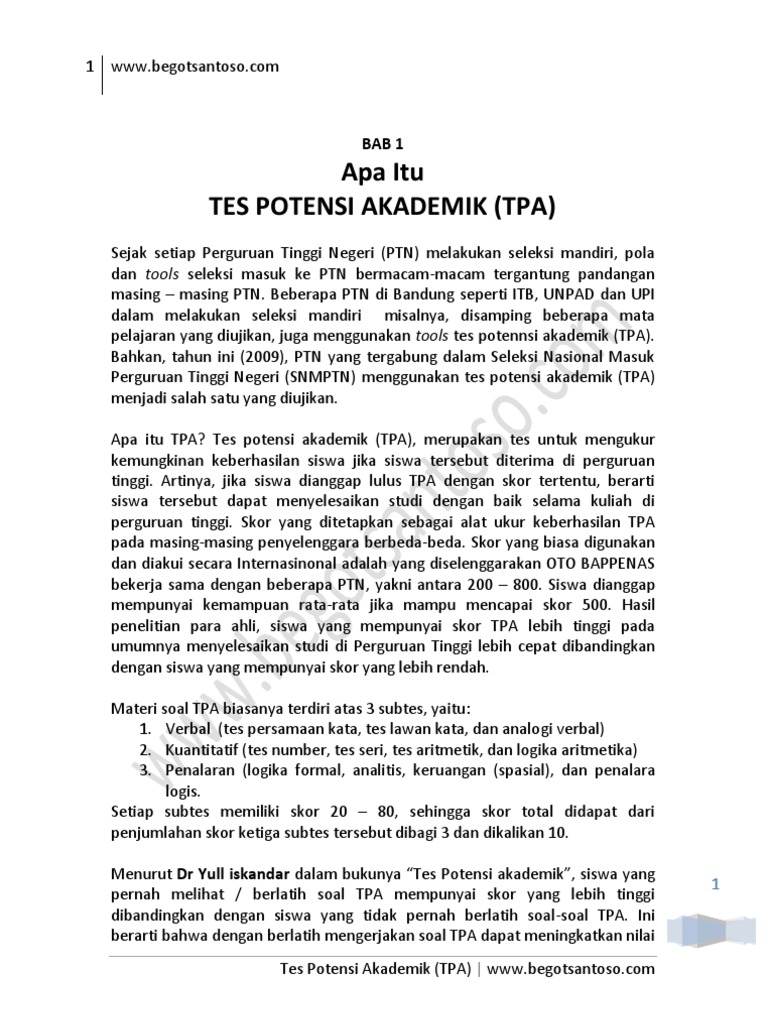 Pdf Apa Itu Tes Potensi Akademik Tpa Indrajid Haryo Academia Edu
