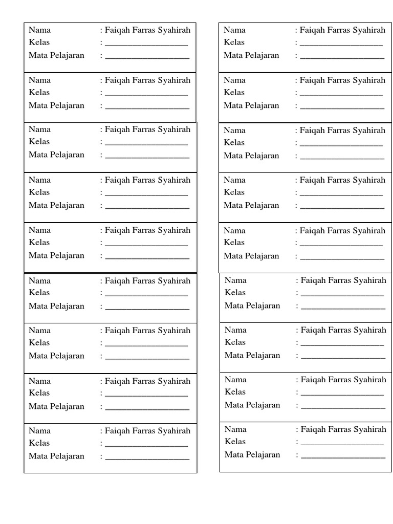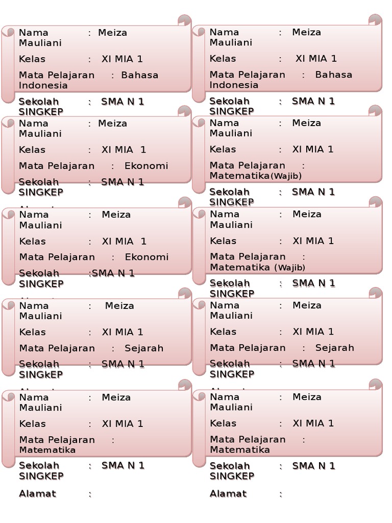 Exel Untuk Label Kelas 8 Nama Kelas Mata Pelajaran Jenis Carissa