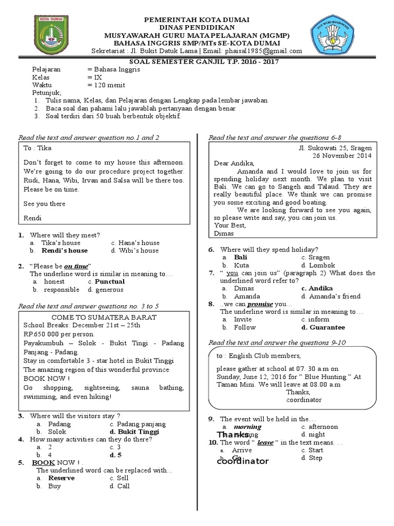 Soal Fix Mgmp B Ing Semester Ganjil 2016 2017 Dengan Jawaban 1
