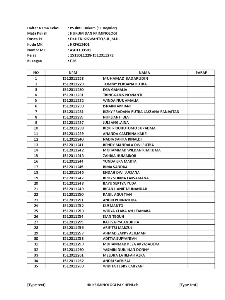 Dnk Mo Paralel 2 Xls 1 Daftar Nama Kelas Mata Kuliah Dosen Pj Kode
