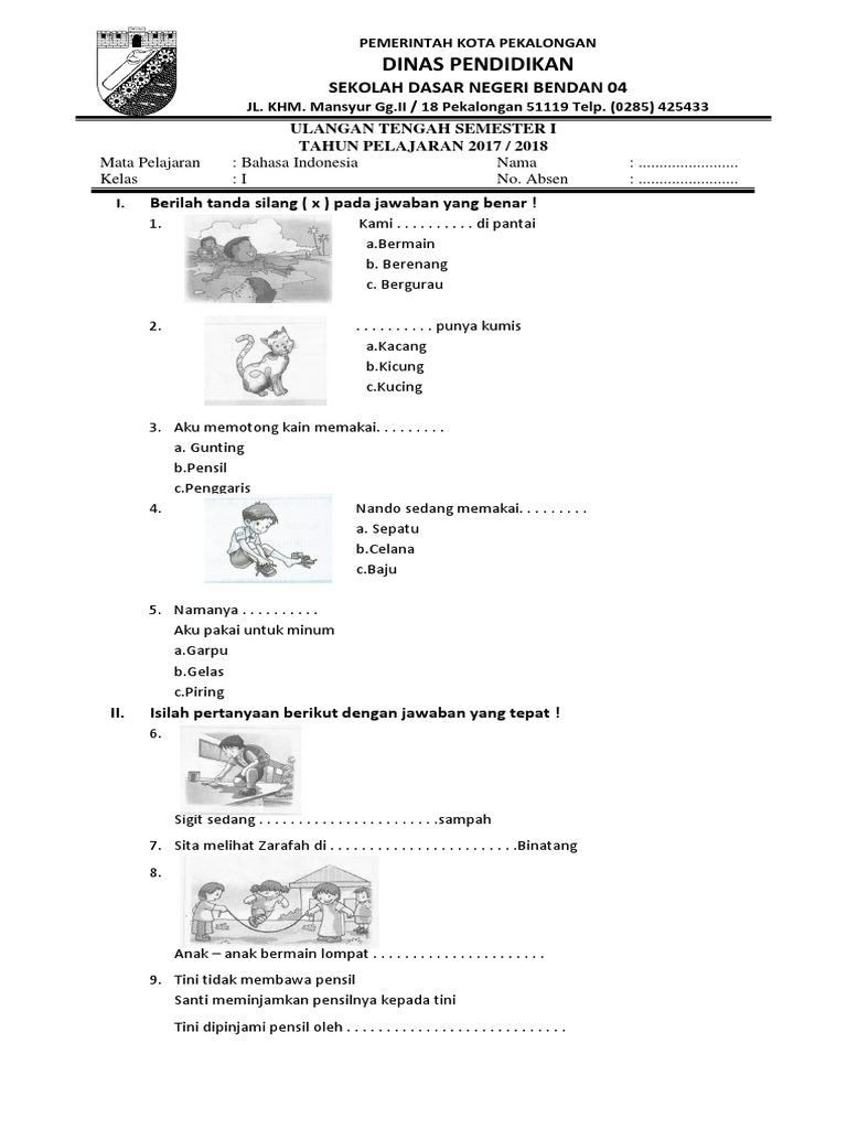 Soal Bahasa Indonesia Kelas 1 Sd
