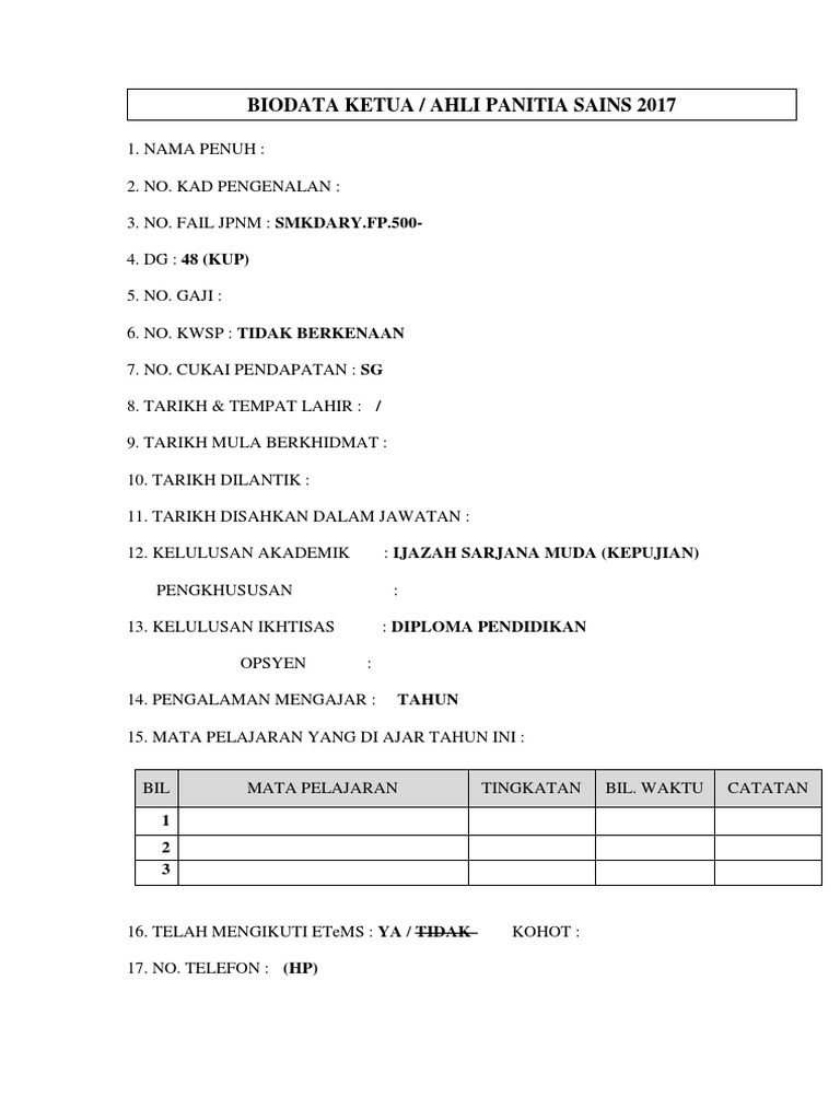 01biodata B Rujukan Senarai Nama Kelas 2