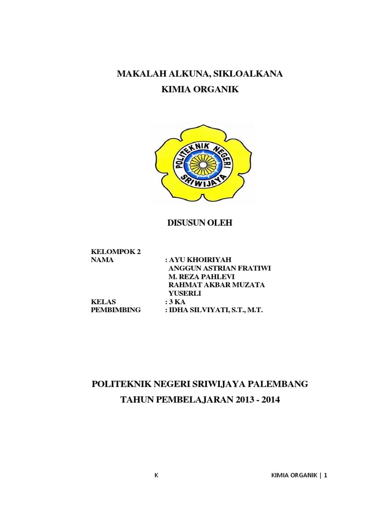Makalah Alkuna Sikloalkana Kimia Organik Disusun Oleh