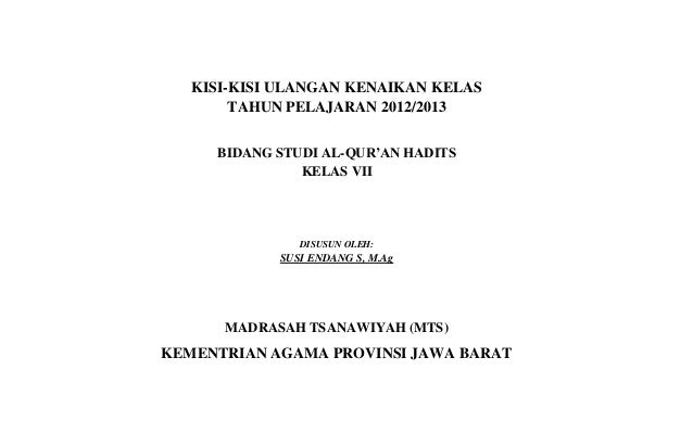 Kisi Kisi Soal Uambn Al Qur An Hadits Mts Kurikulum 2013 Tahun 2019