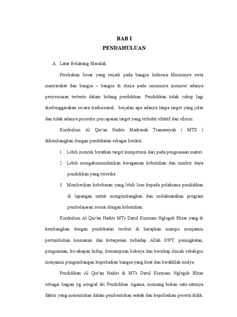 Tujuan Dan Ruang Lingkup Mata Pelajaran Al Qur An Hadis Madrasah