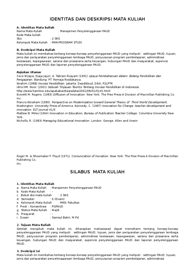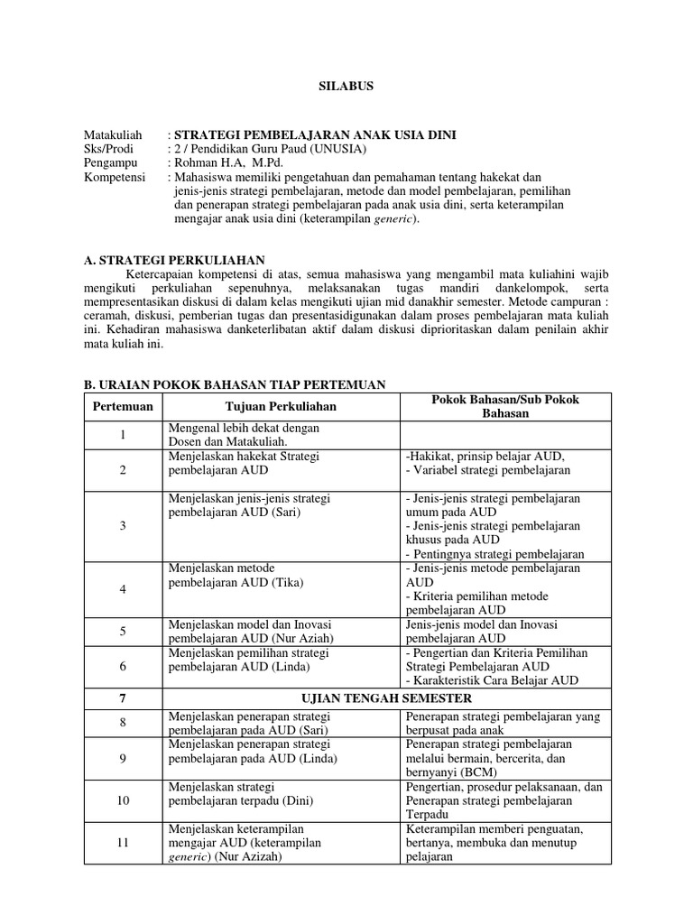 Silabus Strategi Pembelajaran Unusia Paud