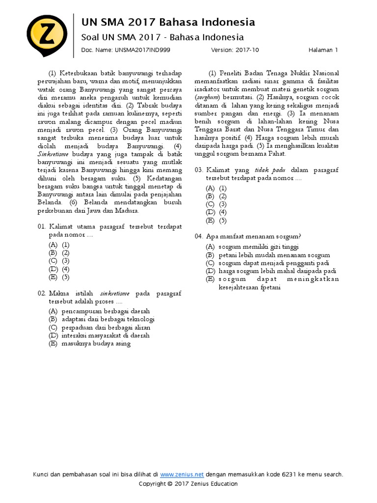 Pembahasan Soal Ujian Nasional Sma 2017 Zenius Blog