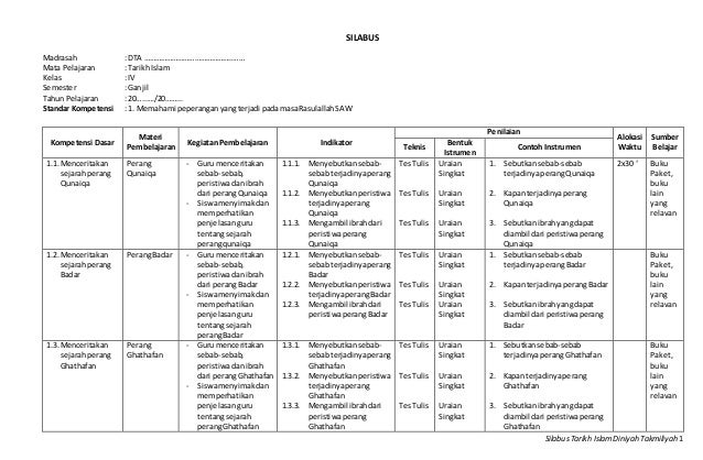 Contoh Lengkap Kurikulum Diniyah Formar Word Doc
