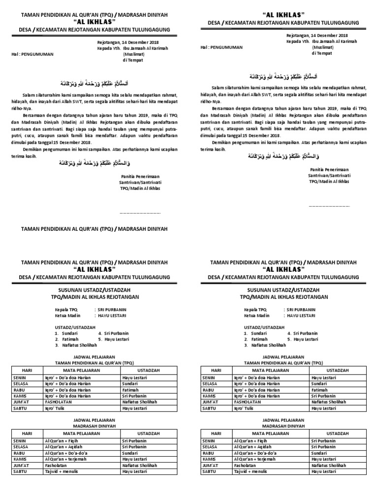 Contoh Jadwal Madin Informasi Seputar Tpq Mdt Dan Pesantren