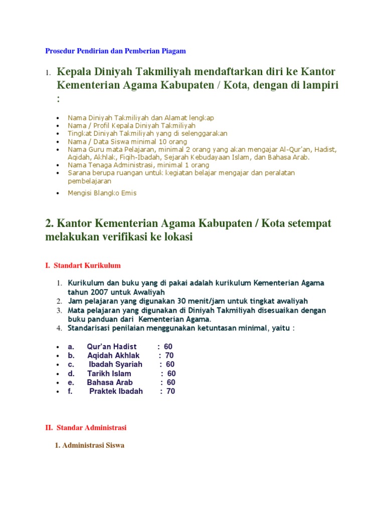 Prosedur Pendirian Madin Sesuai Depag