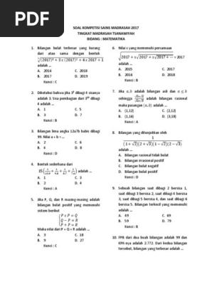 Contoh Soal Ksm Mi Mts Dan Ma Tahun 2016 Dan Kunci