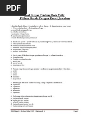 Soal Penjas Tentang Bola Volly Pilihan Ganda Dengan Kunci