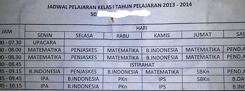 Contoh Jadwal Pelajaran Sd Mi Kelas 1 2 3 4 5 Dan 6 Kurikulum 2013