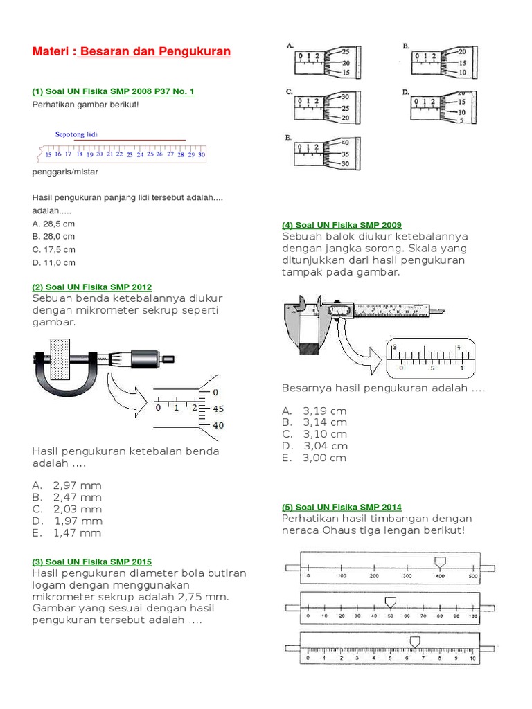 Contoh Soal Dan Jawaban Pengukuran Dengan Alat Ukur
