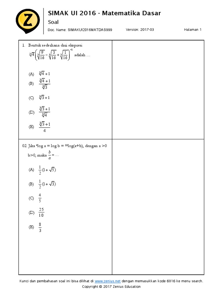 Pembahasan Simak Ui 2017 Matematika Dasar Catatan Matematika
