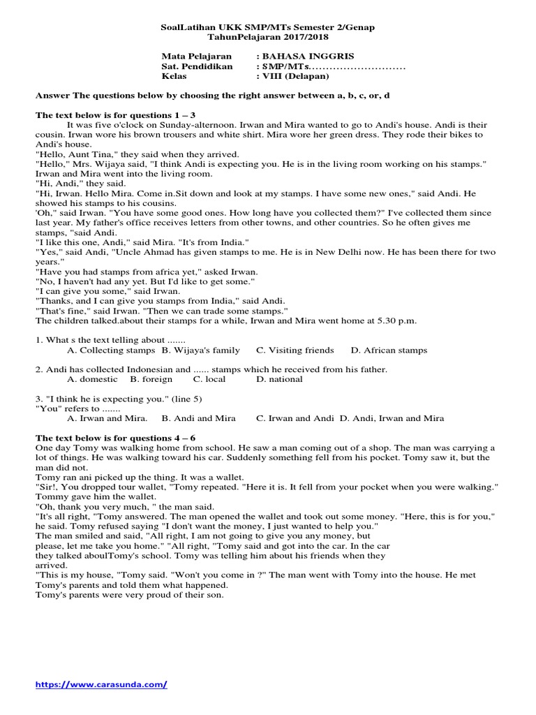 Soal Ukk B Inggris Kelas 8 Tanggapan Kurikulum 2013 Th 2018