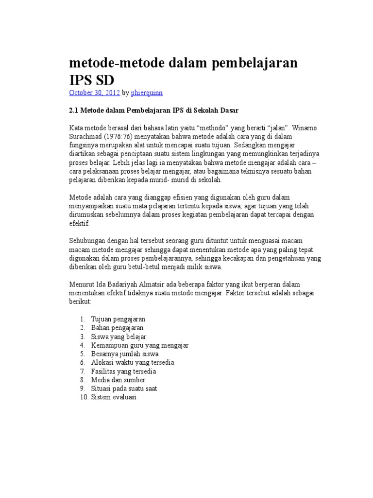 Doc Metode Metode Dalam Pembelajaran Ips Sd Fita Agristin