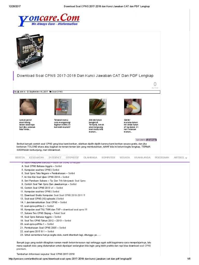 Edoc Site Download Soal Cpns 2018 2019 Kunci Jawaban Cat Dan Pdf