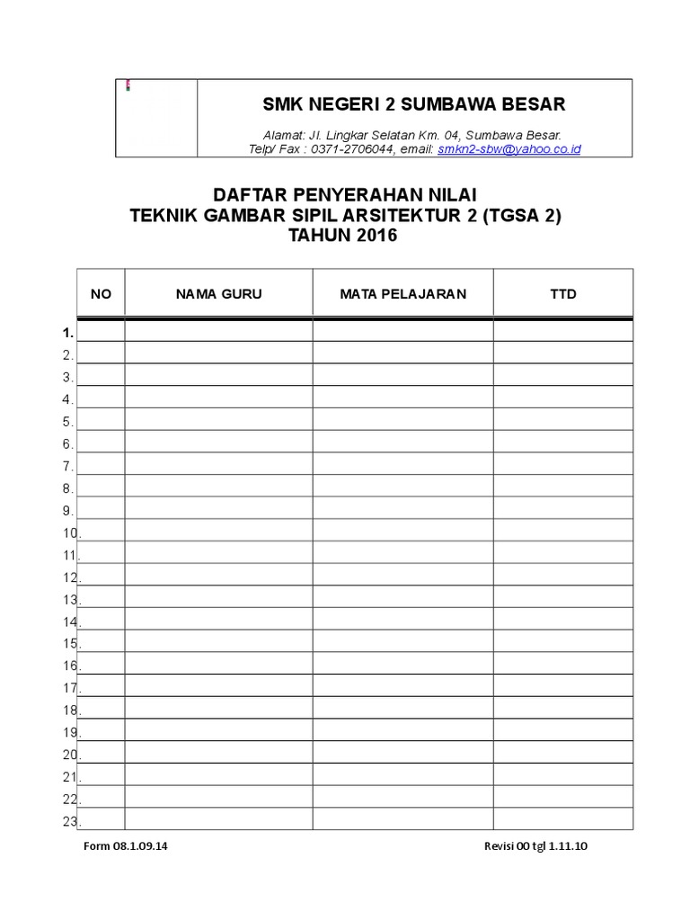 Download Format Denah Kelas Daftar Piket Daftar Mata Pelajaran