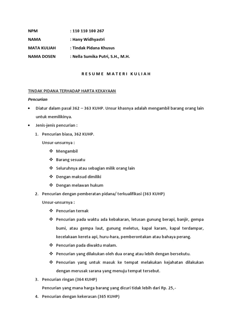 Doc Resume Materi Perkuliahan Pidana Semester 2 Nisma Al Modia