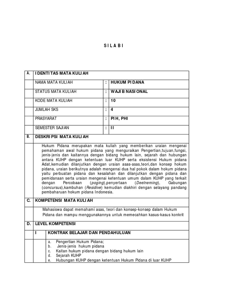 Pdf Mata Kuliah Hukum Pidana Kode Mata Kuliah Wui 2308 Alex