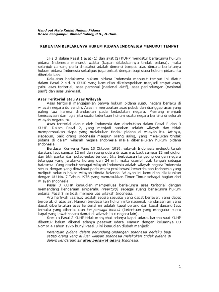 Hand Out Mata Kuliah Hukum Pidana Dosen Pengampu Ahmad Bahiej S H