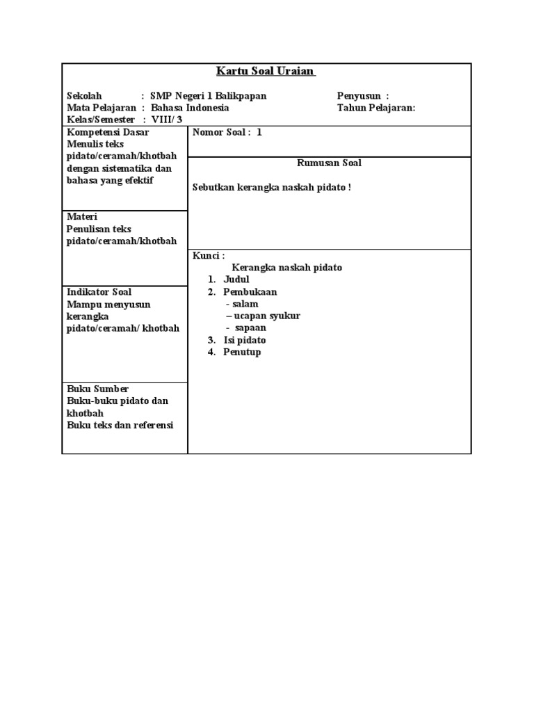 Kisi Kisi Soal Dan Jawaban Bahasa Indonesia Smp Kelas 7