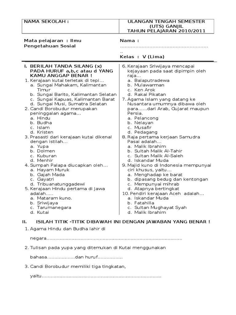Soal Uts 2 Ips Kelas 4 Sd Terbaru Dan Kunci Jawaban Tarbiyatul